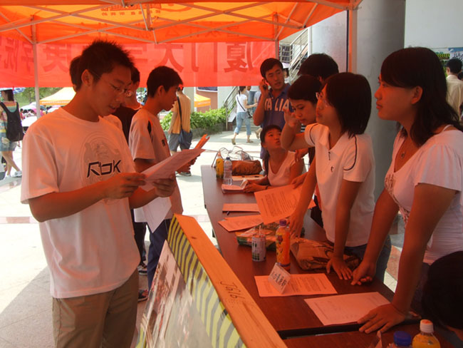 这两天的中午和傍晚是协会正式向07级新生纳新的时间,新血液的注入对协会的发展意义非凡,也表明了协会规模的进一步扩大和人才的进一步聚集。在这两天,协会和分会的成员们都积极地投入到纳新的活动中,耐心与前来咨询的同学进行讲解和说明。设点的位置前一直围绕着学弟学妹们,他们对于学促会性质、作用等方面的疑惑都在这里得到了很好的解决,并且积极地向学姐学长们提问,包括各个部门的作用和活动内容等,以及进一步的了解到自己适合的位置,做出正确的选择。学促会对于新生们来说是陌生的,但这丝毫不影响他们对此的兴趣,出于对未来实习和就业的关注和兴趣,相信这是一个最适合他们锻炼和发展的平台。因此在这两天,报名表登记表曾三度重印,到了将近收点的时间都还迎来了许多前来询问的新生们,而翻开已经回收的表格,看到了来自各个系、各个专业的优秀学生,大家的选择多样,但在简历上都丰富的体现了他们对于加入学促会的的期许和未来自己方向的选择,为自己的职业生涯做出了第一步的规划。