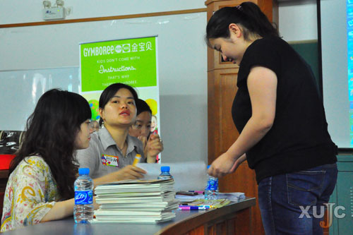 参加此次应聘的主要是我院英语系大三、大四学生。该公司课程顾问指导老师、专业指导老师及金宝贝的相关工作人员担任本次校园招聘会的考官。本次招聘会分为自我介绍和应聘面试。在自我介绍环节中,同学们要从自身的性格、家庭和教育背景以及实践经验等方面简单介绍自己。经考官筛选,第一轮面试过关者才能进行第二轮应聘面试。在第二轮面试中,课程顾问考官主要考察应聘者的语言表达和社交能力,婴儿指导老师主要考察应聘者的英语口语和才艺。