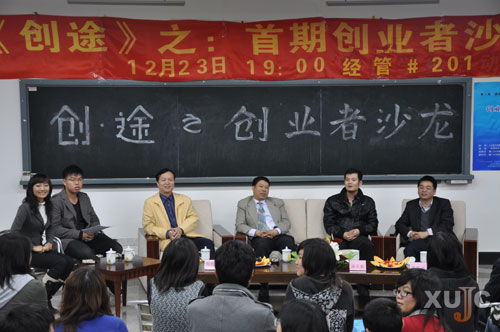12月23日晚,“创•途”系列活动之首期“创业者沙龙”在经管大楼201室举行,吸引了我院十几支创业团队、近80人参加。我院实习与就业服务中心邀请了厦门市工商行政管理局企业注册登记处副处长周顺连、兴业银行厦门科技园支行行长黄继军、福建省诺奇大学生创业基金会副秘书长汤元彰作为此次沙龙访谈嘉宾,与各创业团队一起深入探讨了企业工商注册、争取银行贷款和风险投资、创业与就业的抉择、创业各方面资源获取以及创业团队建设与管理等各方面问题。