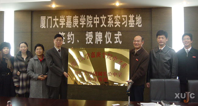 近日,我院中文系与厦门大学附属实验中学签订了实习基地协议,并举行了授牌仪式。厦门大学附属中学姚跃林校长、人文与传播学院苏新春院长、实习与就业服务中心咸冬英副主任等参加了此次活动。