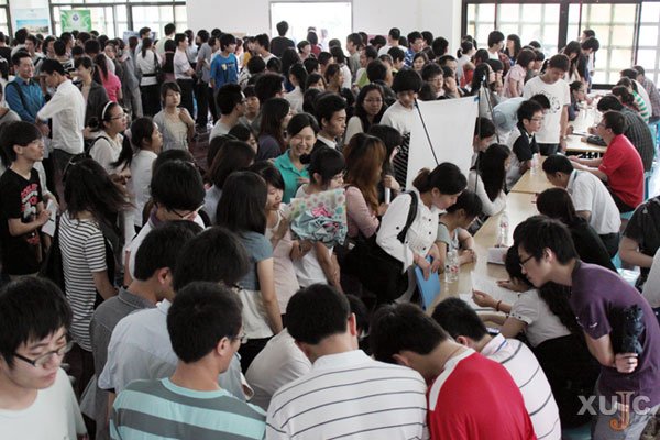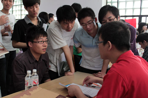 记者在现场还看到了几位穿着职业正装的同学,上前一问才知他们都是大一的学生。对此,09级国际经贸系的孟同学说:“我最近看了一本叫《求职从大一开始》的书,所以也想来试试,穿着正装既是对自己负责,也是对企业负责。”而09级财政金融系朱同学则表示:“今后想在厦门发展,所以从大一就开始做打算。”当然,其中也有不少大一同学是带着观摩的态度来提前感受招聘会的气氛。
