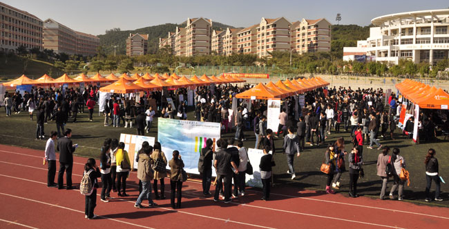 12月8日,我院在南区田径场举办了2011届本科毕业生供需见面会,共有108家企业单位来我院吸纳新鲜“血液”。本次供需见面会为我院3100多名毕业生提供了一个与用人单位面对面交流的平台。
