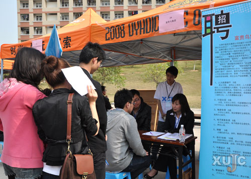 4月13日下午,2011届毕业生“外语外贸、营销、管理、物流、技术类”行业专场招聘会在南区篮球场举行。40家企业走进校园招贤纳士,其中不乏兴业银行、富贵鸟、雅客等知名企业。