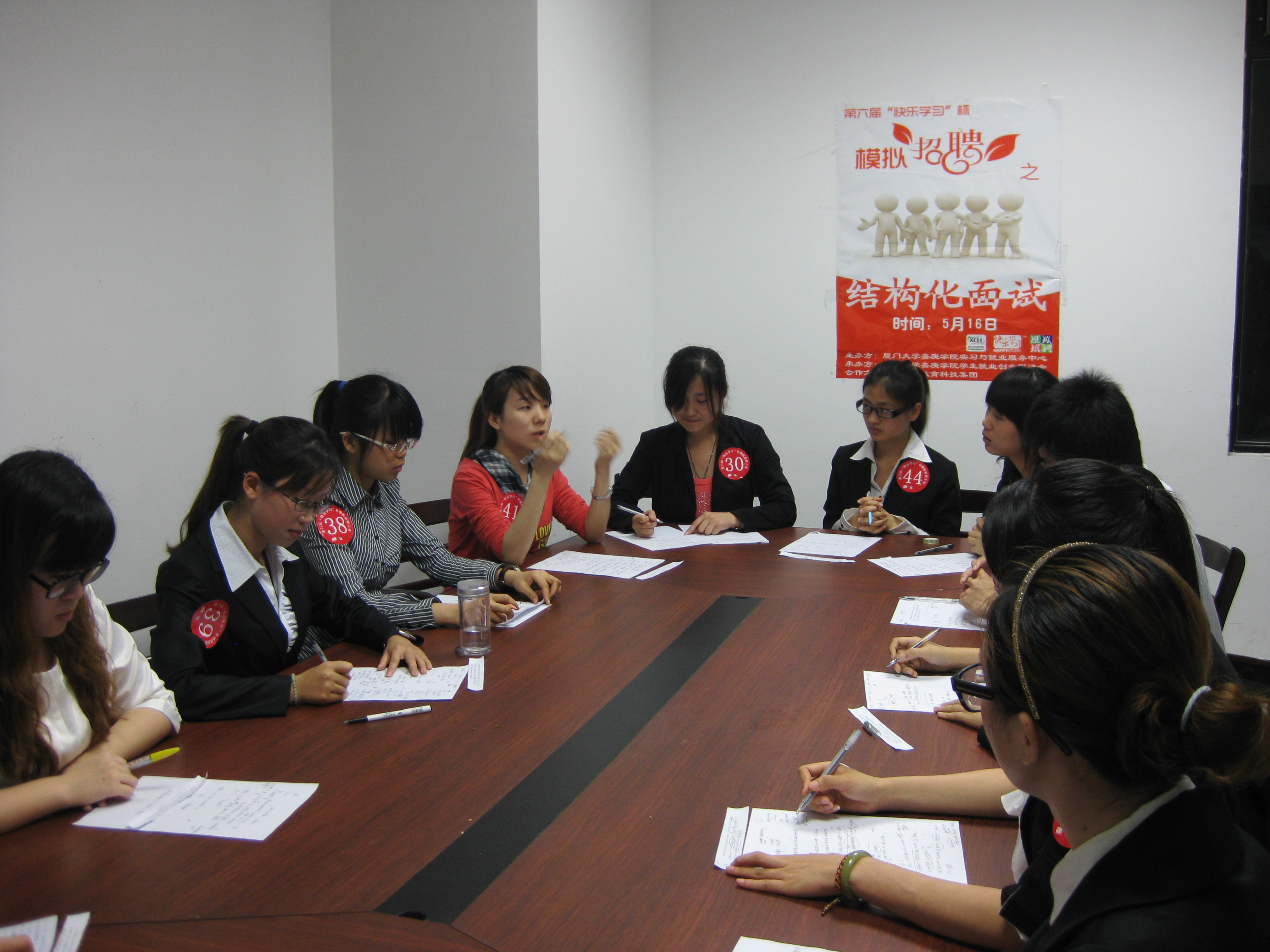 5月16日晚,第六届“快乐学习”杯模拟招聘大赛初赛“结构化面试”于图书馆研讨室举行,评委团由快乐学习教育科技集团的经验人士和嘉庚学院职业生涯规划老师组成。