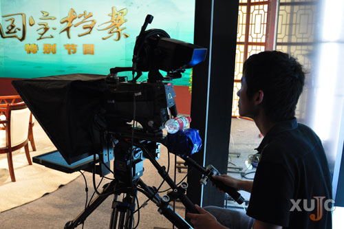 郑志艺同学在CCTV4《国宝档案》栏目组进行录制前的调试