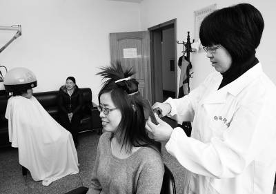 浙江诸暨,某集团员工在单位内部的美发室美发。不少浙江诸暨的企业有这样一个共识:要通过留住员工的心,留住员工的人。郭斌摄