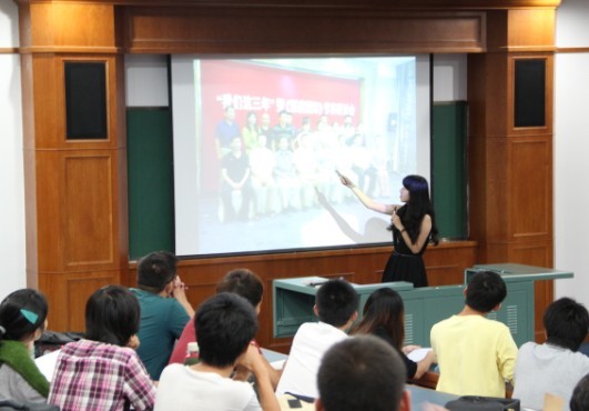 牟红,新闻传播系广告专业,于2012年暑假在中央电视台实习,在国际频道――深度国际中参与幕后工作。她首先解答了三个问题 “央视是什么?”“央视怎样工作?”“在央视做什么?”为同学们揭开了央视的神秘面纱。通过短期的实习生活,她总结道:“作为一个大学生首先要掌握自己的专业知识,其次要有平和的心态,并且要注重细节,细节决定成败”。
