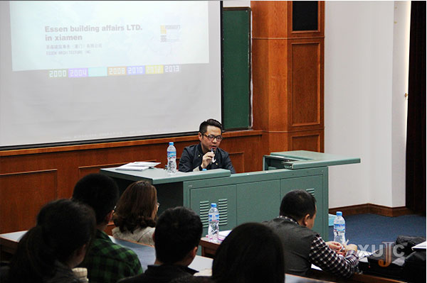在曾国垠与同学们交流完之后,杨杰向同学们介绍了曾国垠在公司的表现,他说:“从曾国垠身上看到嘉庚学子的特质,他对建筑设计的热诚非常高,因此,这次我也特意前来与大家进行面对面交流。”