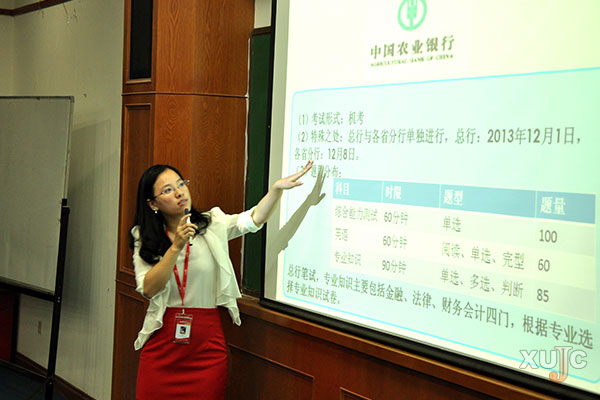 在谈到面试技巧时,余少华说:“多种面试形式的技巧要尽可能知道一些。”因为每年的面试形式四大银行都会改变,只有了解更多才能脱颖而出。她还拿了去年考试中的面试真题与同学们分享。