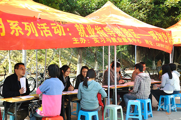咨询会在中区食堂门口举行,由四位实习与就业服务中心的工作人员和三位行政秘书兼辅导员组成咨询阵容,为同学们提供就业和实习咨询服务。这七位指导老师都获得了国家二级职业指导师认证,拥有丰富的指导经验。“为了让同学们更有竞争力。”谈起这次咨询会的目的,毛静用坚定的语气说。