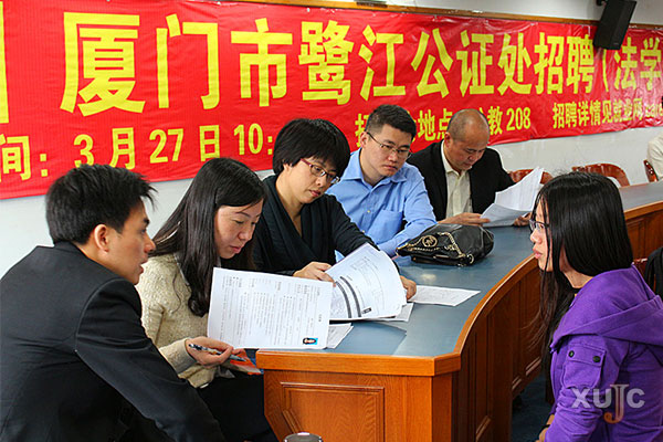 3月27日上午,厦门市鹭江公证处招聘会在公共教学楼1号楼208举行。厦门市鹭江公证处是福建省唯一的公证体制改革试点公证处,这是其首次到嘉庚学院进行校园招聘,主要针对法学专业的毕业生,招聘岗位为公证员助理。