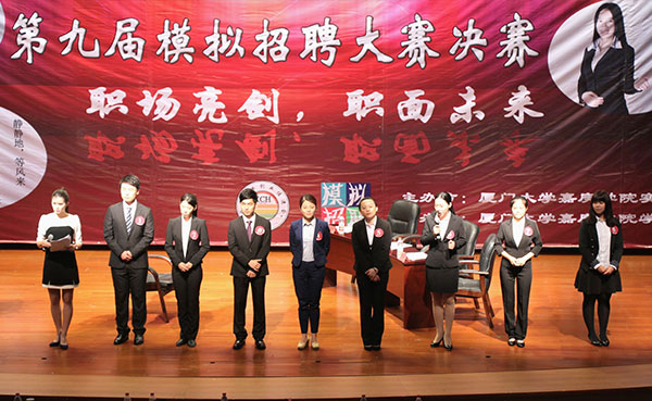 该赛事由实习与就业服务中心主办,学生就业创业促进会承办。绿宝集团人力资源总监周娟、漳州建行人力资源部副经理郑雅玲、同安兴业银行行长黄继军和招商美仑山庄总经理张文成担任此次大赛的评委。