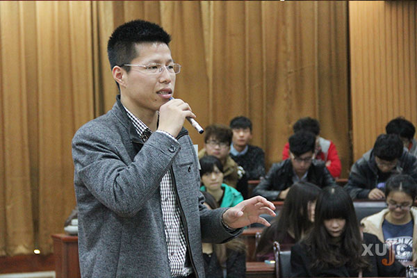 校友金圣现任宁德市宅中乡党委副书记。他分享了自己在报考公务员中的一些经验和方法,指出了当前新招收的公务员中存在的问题,并为同学们提出了报考公务员的相关建议。金圣的讲述幽默风趣,又不乏实用的经验,现场的同学都觉得受益匪浅。