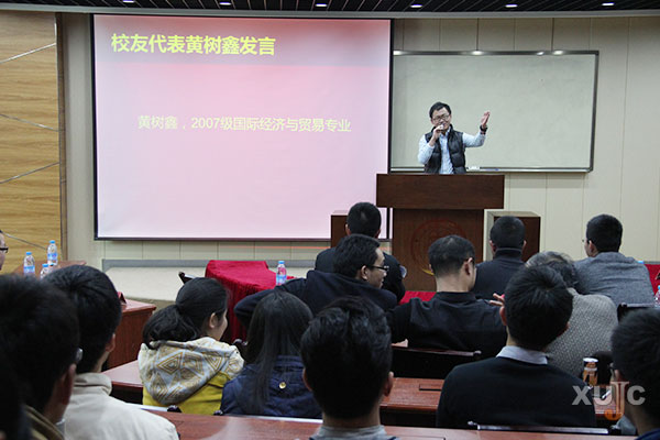 校友黄树鑫主要指导同学们学业上的问题,他认为不管大家将来想创业还是就业,都必须学好自己的学科知识,充分的知识储备是做一切事情的基础和前提。他还分享了自己的学习经验。