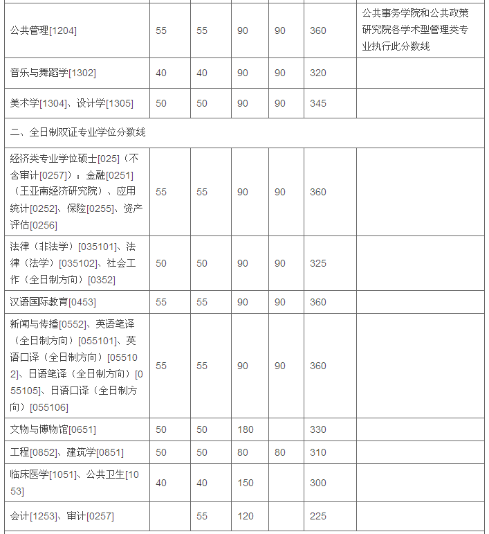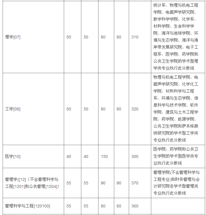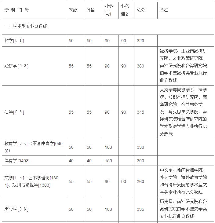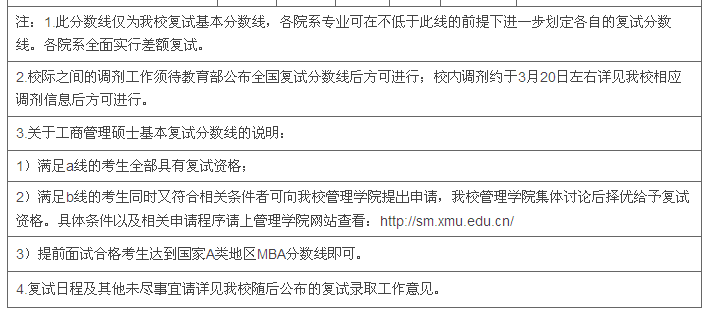 厦门大学2015年硕士研究生复试基本分数线