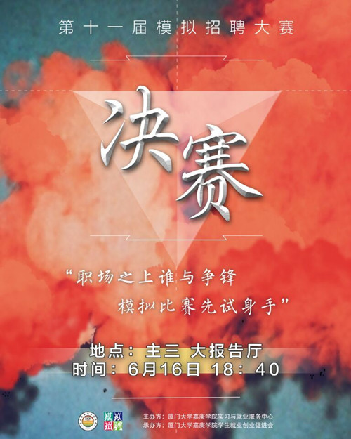 第十一届模拟招聘大赛历时一个多月,经过简历筛选、电话面试、无领导小组讨论、厦门实战、密室对话等环节的激烈角逐,最终有8名选手晋级决赛巅峰之夜。