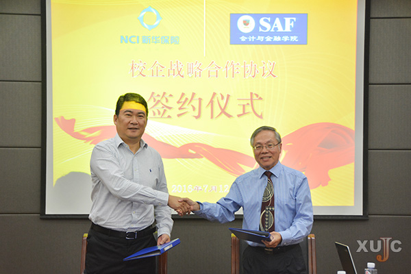 7月12日上午,在经管大楼415会议室,会计与金融学院和新华人寿保险股份有限公司福建分公司(以下简称“新华保险福建分公司”)举行共建合作基地签约仪式。我校戴一峰副院长、会计与金融学院院长Ng Beoy Kui(黄梅贵)、实习与就业服务中心主任叶志筑;新华保险福建分公司总经理杨建、人力资源部总经理刘绍芳、人力资源部人事管理室经理林菡等出席了签约仪式。