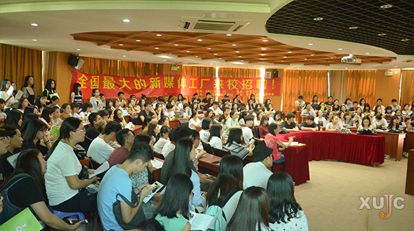在接下来的公司介绍中,谢女士着重提及了学生最关心的公司福利问题――“培训”“导师”“分享”……她表示,得体的商务礼仪和正确的沟通技巧都是应届毕业生进入社会后必须掌握的知识,提前学习能够帮助学生更好地融入社会。谢女士表示,不同的工作岗位需要不同的人才,大学生跳跃的思维适合新媒体的工作要求,这也是厦门飞博共创网络股份有限公司更愿意把招聘重心放在学校的原因。