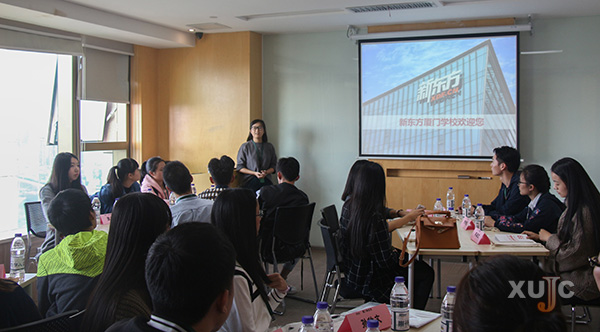厦门新东方教育科技集团人事部负责人为同学们讲解了该集团的发展历程以及组织文化。从成立至今共23年的时间里,新东方不断地成长,扩大教育领域,其中包括中小学基础教育、学前教育、在线教育、出国咨询、图书出版等。