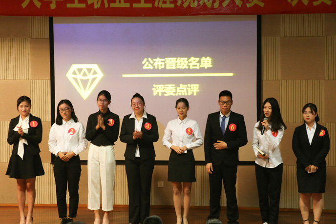 在个人职业规划书展示环节中,借助精心制作的PPT、视频,8名选手依次上台向评委及观众阐述自己的职业规划。“下面是产品汇报,产品性能为踏实、无惧、坚持,产品特点为高调做事、低调做人。”2015级管理学院学生李锦涛的职业定位是做一名产品项目经理,在展示环节中,他不按常理出牌,将自己变身“产品”,试问评委“能否出厂销售”,赢得了观众的掌声。2016级法学院学生李睿琳想成为一名记者,对此她介绍了自己付出的针对性实践。她说:“一个人的声音往往太过渺小,但我愿成为一名一线记者,让渺小的声音不再渺小。”