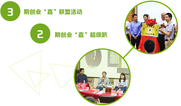 创业“嘉”超级趴则是一档以邀请创业大咖以及我校优秀创业校友分享创业心得为主要内容的活动,旨在架构在校创业者和创业校友交流的平台,并助力校园创业氛围的塑造。2016年,我校共举行2期创业“嘉”超级趴活动。