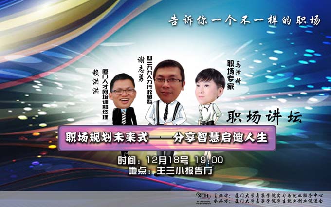 1.赖洪洪,厦门人才服务中心培训部经理,掌握职场动向一手信息,对人才市场的趋势和走向有独到见解。
