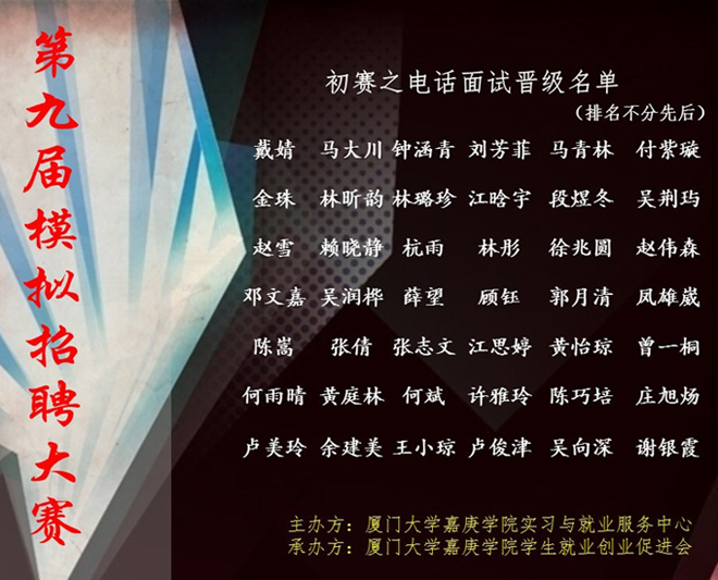 第九届模拟招聘大赛初赛之电话面试晋级名单