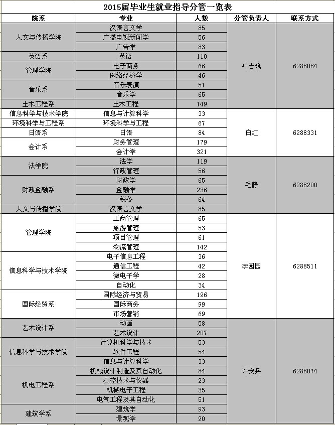 2015届毕业生就业指导分管一览表