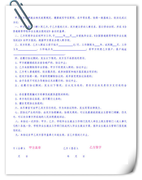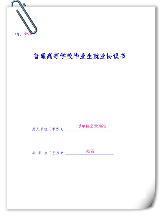 2016届毕业生就业协议书填写模板