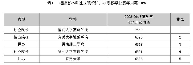 一所好的大学,过硬的人才培养质量是评价的核心,也是检验办学成果的关键指标。嘉庚学子的就业竞争力如何,职场晋升能力又怎样? 日前,福建省教育评估研究中心发布《福建省本科高校毕业生竞争力报告》,该报告利用大数据人工智能技术,以160983份全省高校毕业生的文本简历为样本基础,对福建省本科高校2008-2016届全日制本科毕业生月薪及晋升情况进行调查。在本次调查结果中,我校名列前茅。 平均月薪名列前茅 月薪水平的高低不仅可以反映毕业生就业质量,更是衡量高校毕业生竞争力的核心指标。在《福建省本科高校毕业生竞争力报告之月薪调查》中,我校以7362元的平均月薪均值位列“福建省本科独立学院和民办高校毕业五年月薪”第一名,超过全省高校平均月薪均值。