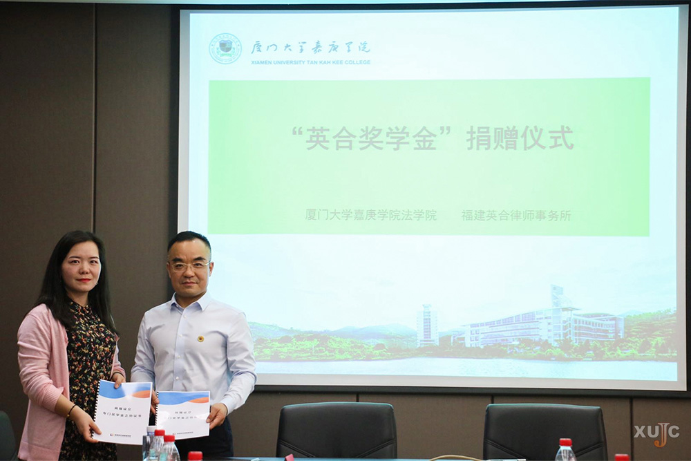 11月7日下午,“英合奖学金”捐赠仪式在我校主楼群1号楼一楼会议室举行。法学院教学实习基地福建英合律师事务所在法学院设立了“英合奖学金”。