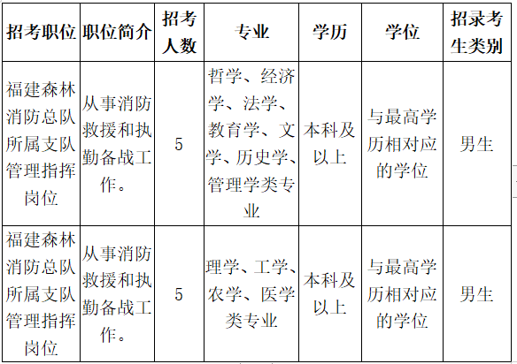 福建省森林消防总队招录应届毕业生10名