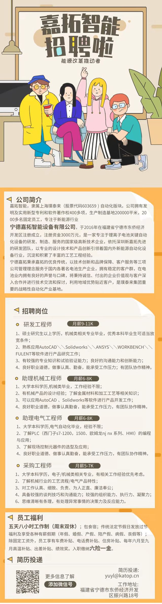招聘丨宁德嘉拓智能设备有限公司