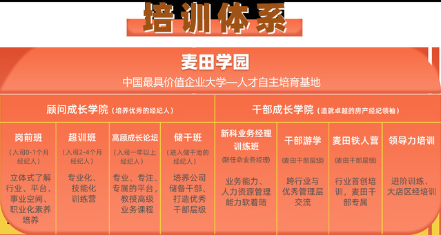 多年来,麦田房产始终坚持以人为本的企业发展理念,致力于为员工提供全面的成长路径和发展空间。麦田与全国多家高校签署合作协议,探索校企合作模式,确保人才输入。在员工培育上,麦田倡导终身学习,以打造学习型组织,建设大学型企业为己任,通过浓厚的文化氛围和强大的人才育成体系,自主培育正直、诚信的房产顾问,2017年,麦田大学获得由中国企业教育百强颁发的《中国最具价值企业大学》和《中国企业培训示范基地》的奖项,这就是社会对麦田人才培育模式的肯定。