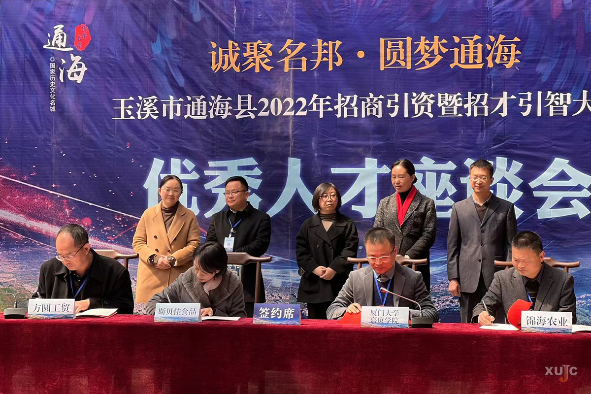 值得一提的是,2月25日至26日,国际商务学院中小企业发展研究中心主任郑文坚副教授受邀参加通海招商引资暨招才引智大会。在通海招商引资暨招才引智大会优秀人才座谈会中,郑文坚以“赤诚相交、倾力相帮”概括了国际商务学院与通海企业产学合作的信任基础与合作态度,并以“校地企、产学研”“请进来、走出去”“引智引资,多点开花”三组关键词对双方产学合作的成果、特点及提升方向作了总结和展望。会后,国际商务学院与云南方圆工贸有限公司、云南省通海斯贝佳食品有限公司、通海锦海农业科技发展有限公司签署了校企合作备忘录。