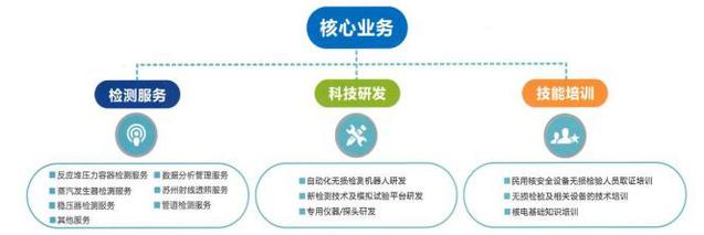 公司主要从事核电站无损检测技术研究、开发和自动化检查装备设计、制造,为核电站工程建设 和安全运行提供在役检查技术服务和技术支持,是国家核安全局授权的民用核安全设备无损检验人员 考核中心。公司坚持专业化方向,坚持科技创新,进入国家核电科技创新体系,负责和参与多项国家 重点研发计划、国家 863 计划、核电重大专项课题的研究,在核电技术创新和技术服务领域具有较高的知名度和影响力。