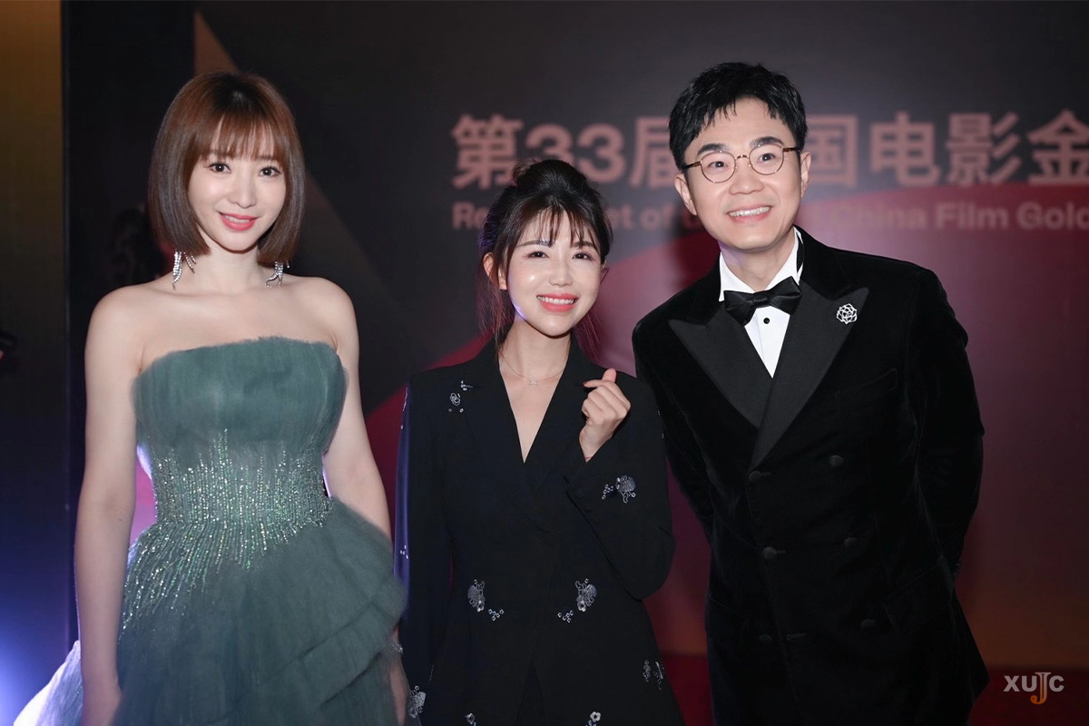 在金鸡百花电影节上,刘凡凡和柳岩(左)、大鹏(右)合影