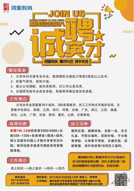 招聘丨湖北词源教育投资管理有限公司(高中日语老师)