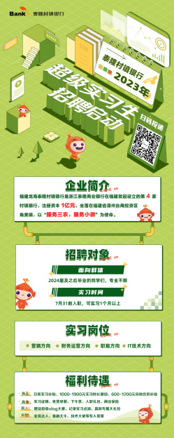 招聘 | 泰隆村镇银行2023年实习生招聘