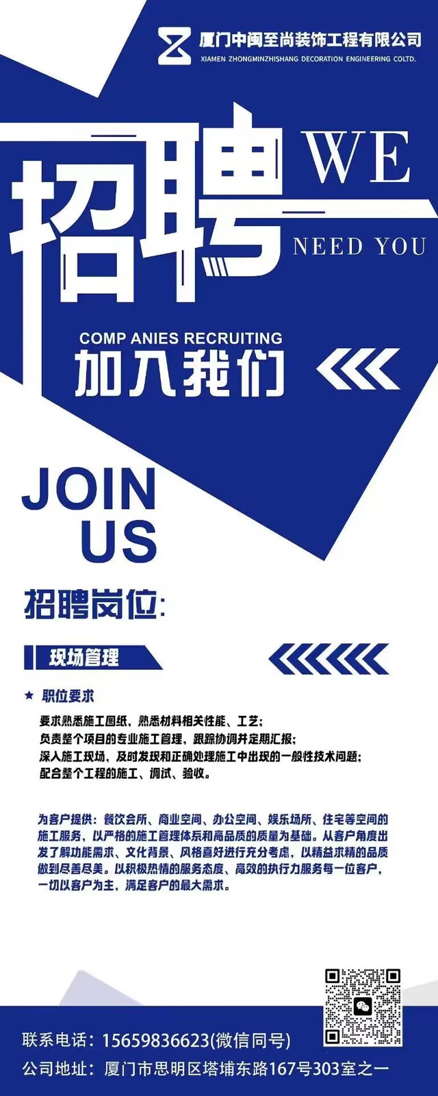 【校友企业招聘】 公司名字:厦门中闽至尚装饰工程有限公司