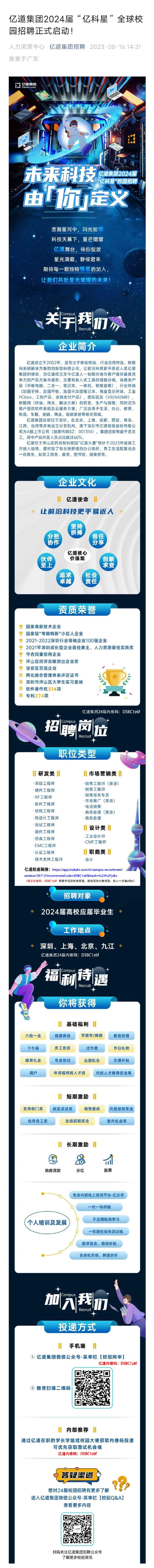 亿道集团24届秋季校园招聘火热进行中!