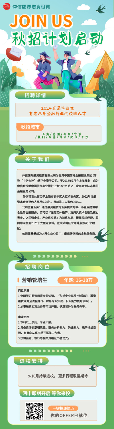 招聘对象:2024应届毕业生 招聘岗位:营销管培生 投递方式: