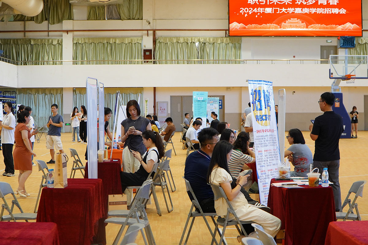 7月4日,厦门大学嘉庚学院2024年“百日千万”专场招聘会在北区风雨球馆举行。63家招聘单位带着948个人才需求来到现场。