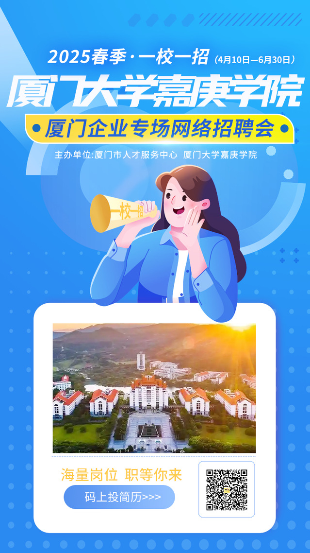 网络招聘会丨2025春季厦门大学嘉庚学院-厦门企业专场网络招聘会