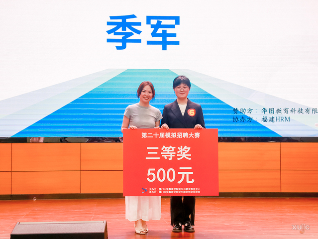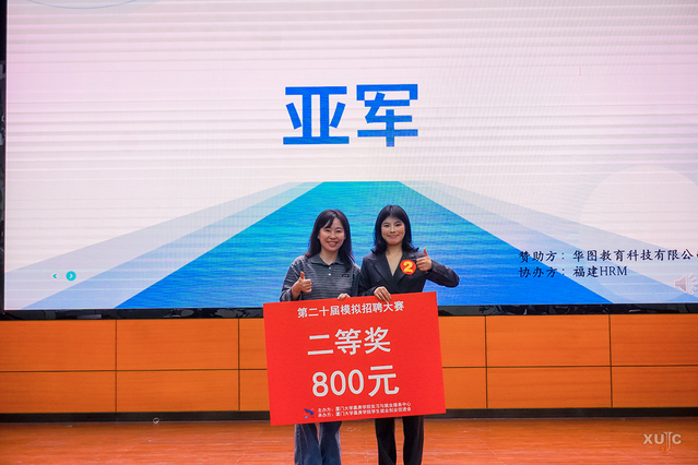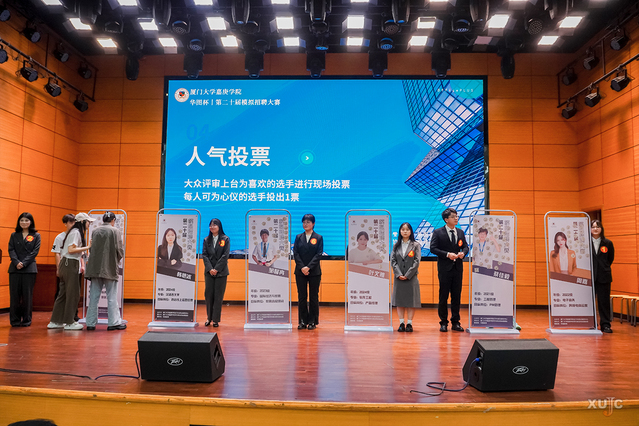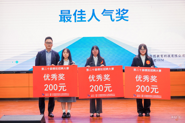 华图教育科技有限公司厦门分校校长翟豪杰,厦门凤凰创意会展集团有限公司人事总监陈达祺,蝉妈妈人力资源总监张洁,厦门希尔顿逸林酒店商务总监、我校2009届日本语言与文化学院校友林晓坤受邀担任评委。