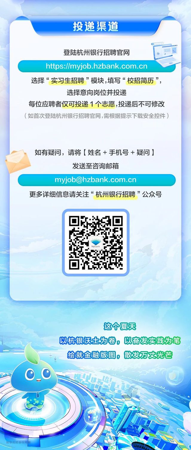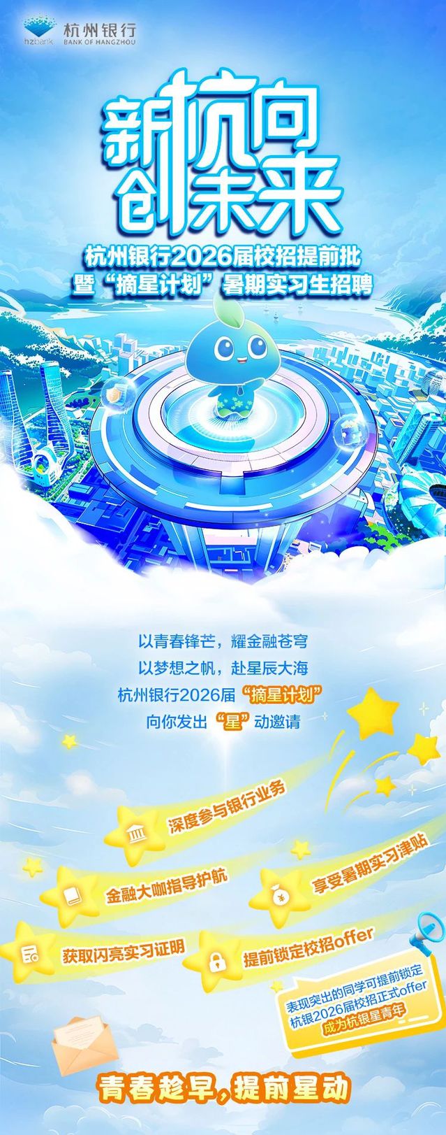 实习丨杭州银行2026届校招提前批暨“摘星计划”暑期实习生招聘