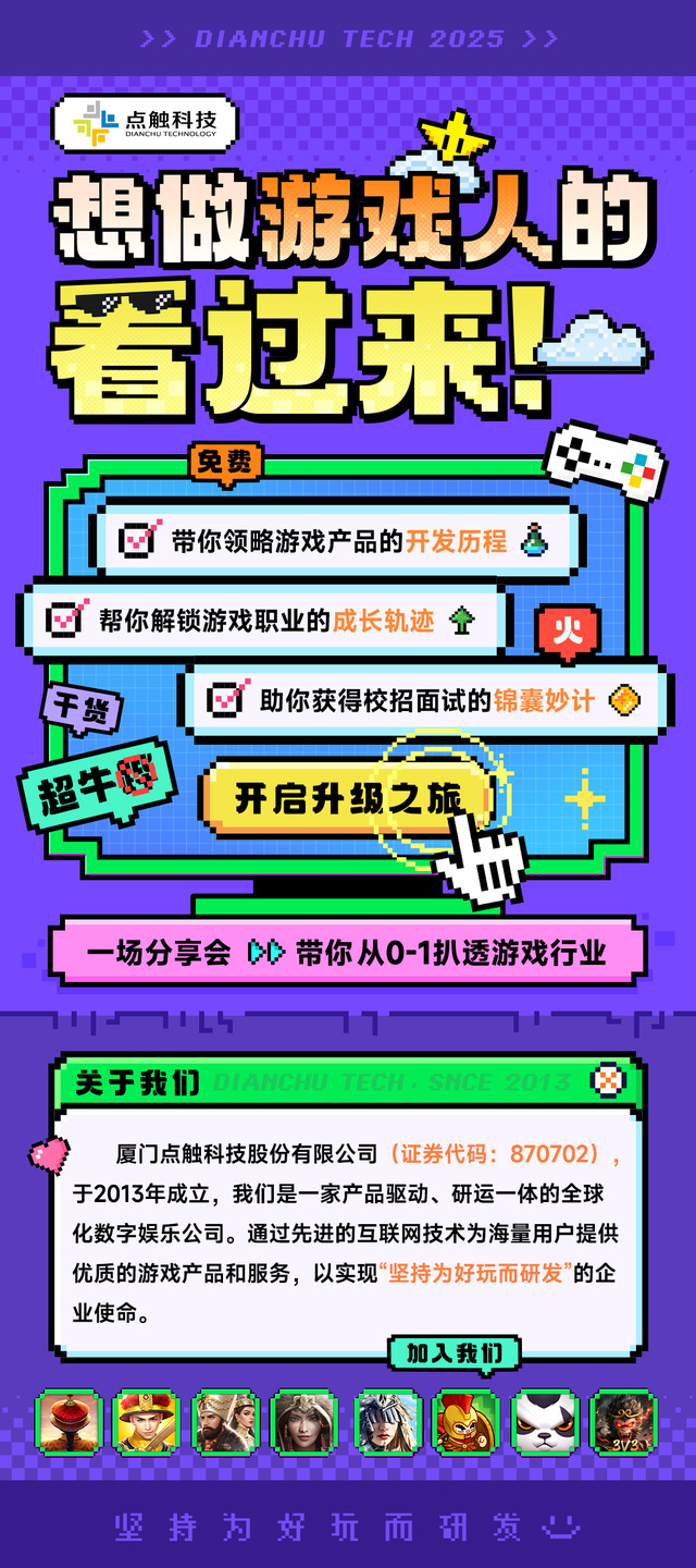 2013 年成立,新三板上市(股票代码 870702),在厦门、深圳等 5 地设办公点,研运一体的全球化公司,旗下《Vikingard》《GameOf Khans》等产品覆盖 100 + 国家,服务千万玩家,曾获 “中国发行商出海收入 Top30”。