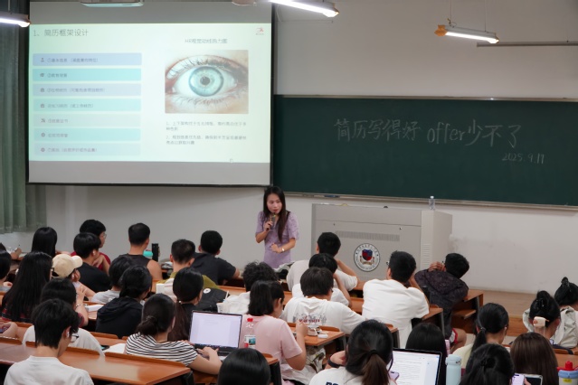 本次讲座特邀厦门甄才优选人力资源公司总经理专家陈燕清主讲,旨在为学子带来简历制作的实战指南。讲座围绕解码HR简历筛选逻辑、高质量简历结构与写作技巧、岗位定制化简历内容打造、1v1简历诊断与优化建议这四大模块深入展开。