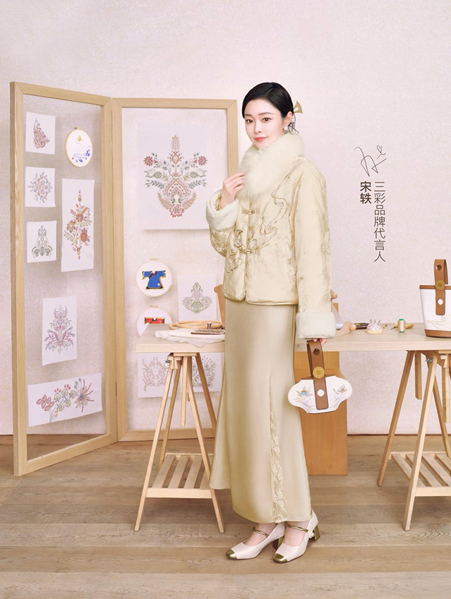 “设计作品能走出校园,离不开一个人。”杨薇禾特别提到泉州市珠绣、金苍绣技艺非遗传承人陈克忍老师,“毕业设计前期,我在搜集泉州的非遗技艺时,有幸认识了陈老师。”杨薇禾说,陈克忍老师与很多品牌进行非遗联名,其中在与宋轶代言的品牌合作时,特意推荐了杨薇禾的设计,认为其与品牌服饰相得益彰。“当时听说要对接明星团队,我的第一反应就是惊喜。”杨薇禾说,她没想到自己的毕业设计作品能获得专业认可,更开心的是,它能成为文化传播的小小载体。