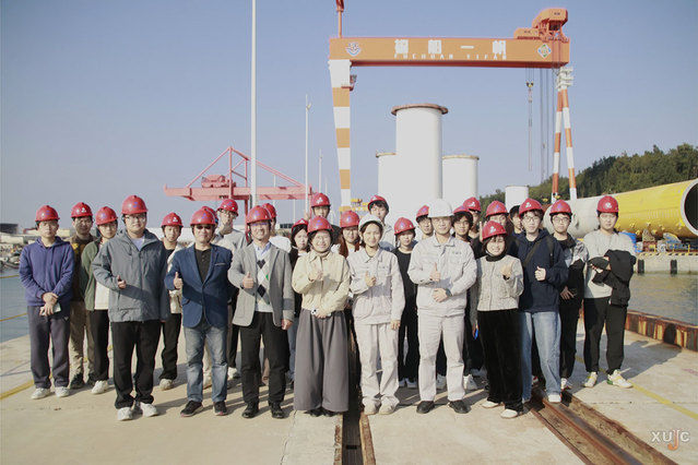 走进福船一帆新能源装备制造有限公司(以下简称福船一帆),占地880亩的智能化生产基地让同学们直观感受到高端装备制造的磅礴气势。在企业技术骨干的引导下,学子们深入生产一线,近距离观摩风电装备、船舶与海洋工程装备的自动化生产全流程,细致了解从零部件加工到成品组装的精密工艺,深切体会到“大国重器”背后的技术沉淀与匠心坚守。